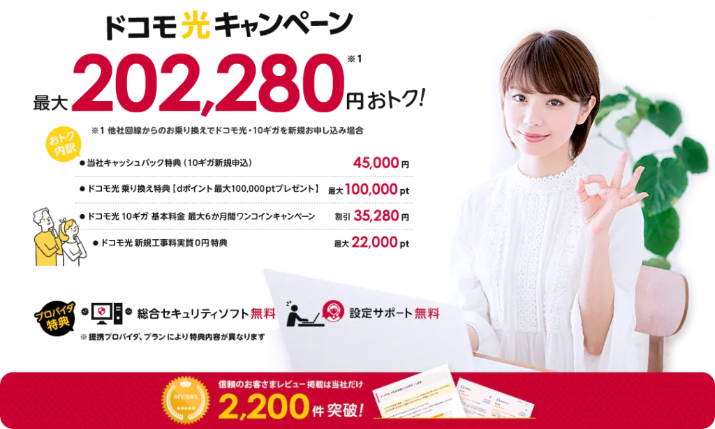 ドコモ光は、ドコモスマホとのセット割引と各種キャンペーンを組み合わせることで、とてもお得に始められる光回線です。ただし、申し込み方法によって特典内容が変わることもあるため事前に確認しておくのがおすすめです。